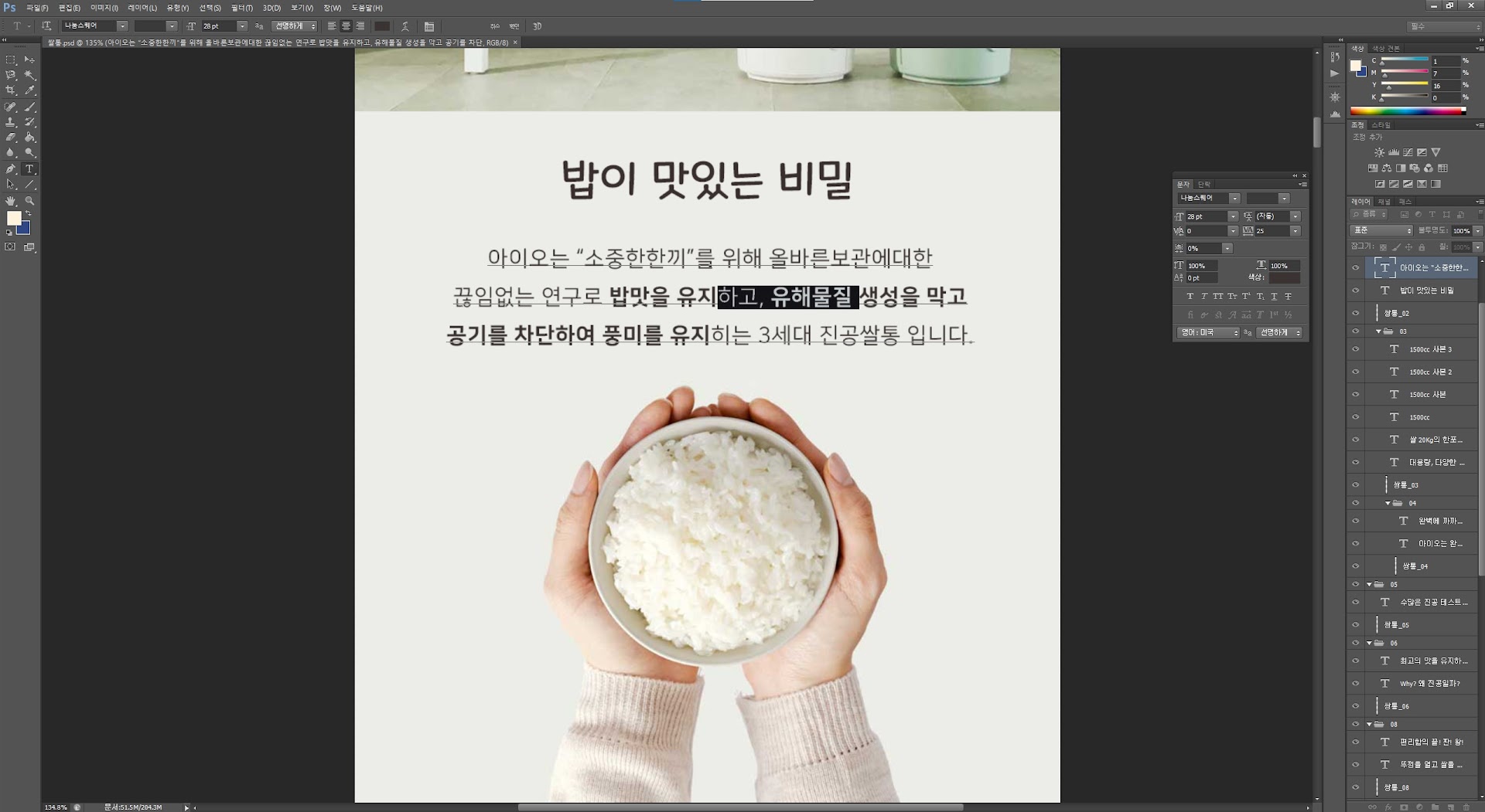 상품을 부각 시킬 수 있는 여러 장면을 뽑아 상세페이지를 제작합니다.